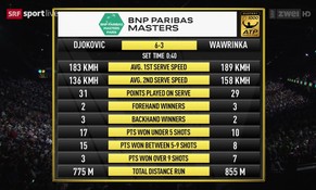 Der Serbe holt sich im ersten Durchgang das frühe Break und gibt von Beginn weg den Ton an. Wawrinka findet zwar immer besser in die Partie, kann den Satzverlust aber nicht mehr abwenden. Im zweiten Durchgang kassiert der Schweizer erneut ein frühes Break, rappelt sich aber auf und profitiert von einem eklatanten Leistungsabfall des «Djokers». Der Romand nimmt dem Serben zwei Mal in Serie den Aufschlag ab und gewinnt wenig später den zweiten Satz.