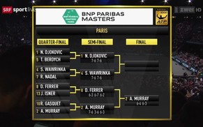 Im dritten Durchgang findet Djokovic aber wieder in die Partie zurück, realisiert erneut den frühen Servicedurchbruch und lässt in der Folge nicht locker. Wawrinka weiss auf die Demonstration des Serben keine Antwort und geht sang- und klanglos unter. Im Endspiel trifft Djokovic auf Andy Murray, welcher im ersten Halbfinale gegen David Ferrer gewann.