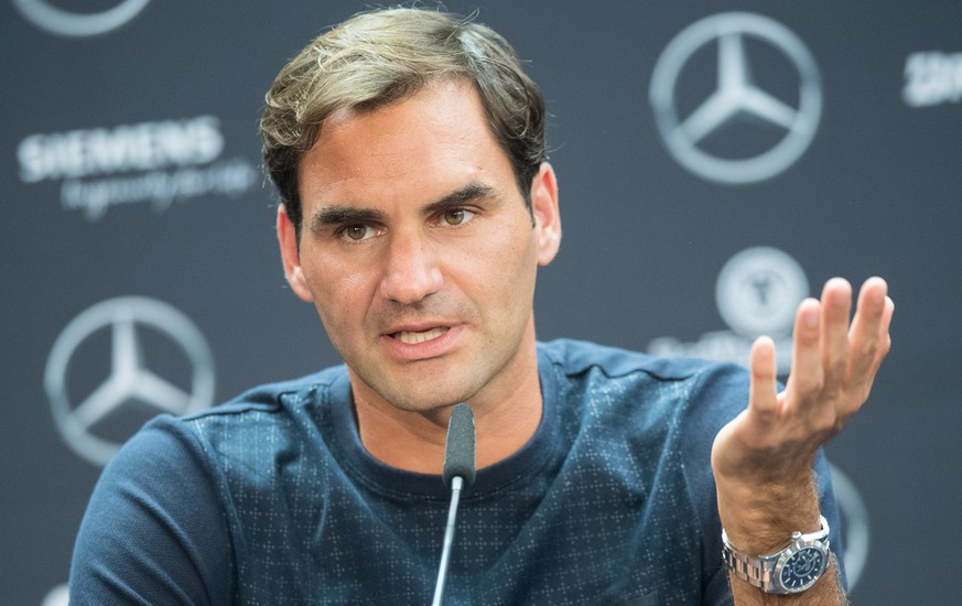 11.06.2018, Baden-Wuerttemberg, Stuttgart, Tennis, ATP-Tour: Roger Federer spricht waehrend einer Pressekonferenz. (KEYSTONE/DPA/Sebastian Gollnow)