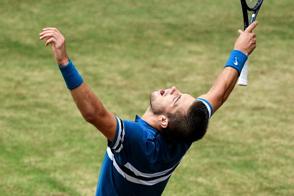 Der Moment des Sieges: Borna Coric feiert in Halle den bislang grössten Erfolg seiner noch jungen Karriere. Bild: EPA/EPA