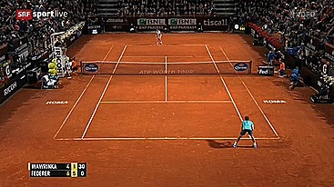 Alles wieder offen in Rom, Federer holt sich mit einem Ass das dritte Game in Serie und kann die Partie ausgleichen.
