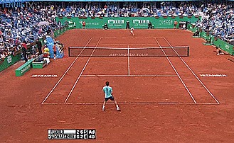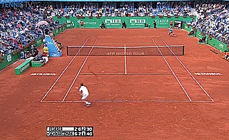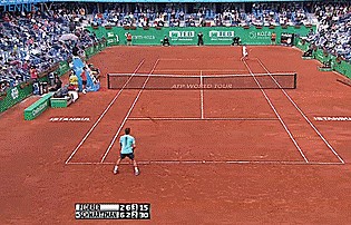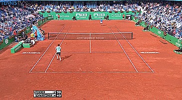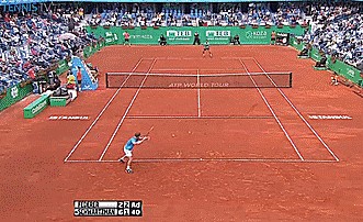 Sehr schön. Federer lässt den Argentinier laufen. Am Schluss steht dieser drei Meter hinder und neben der Grundlinie und Federer bringt den Stoppball.
