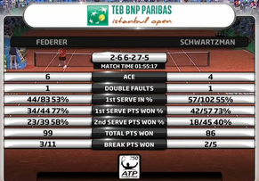Federer tritt dieses Jahr zum ersten Mal in Istanbul an und steht gleich im Final. Nach dem Kampf im Viertelfinal, war nun auch der Halbfinal kein Spaziergang. Am Anfang sieht es schlecht aus für den Schweizer. Federer gibt sein zweites Aufschlagspiel ab und verliert den ersten Satz klar. Im zweiten kann der Schweizer aufdrehen und gleicht aus. Der dritte Satz ist lange ausgeglichen, bis Federer im letzten Game von Schwartzman das Game realisieren kann. Morgen trifft der Schweizer im Final auf Pablo Cuevas oder Grigor Dimitrov. Die beiden spielen nun um den zweiten Finalplatz.