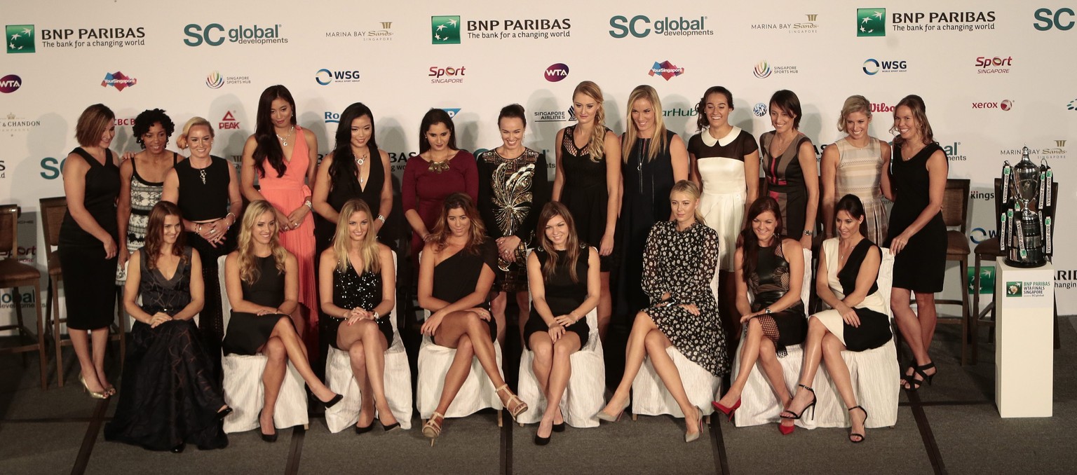 Nein, nein, das ist keine Modeschau: Die besten acht Tennisspielerinnen des Jahres haben sich vor dem Grande Finale nur so richtig rausgeputzt