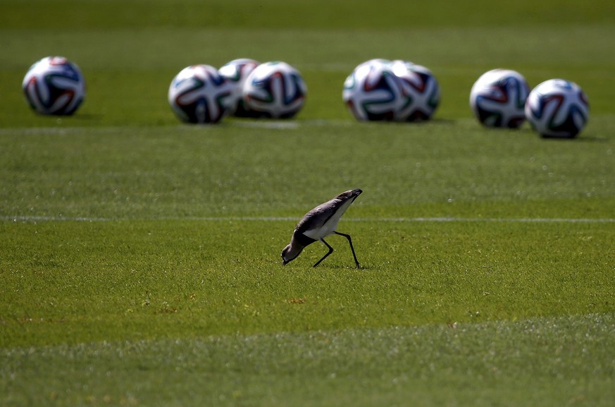 Zum Abschuss bereit? Ein Vogel spaziert völlig unbekümmert über einen Trainingsplatz.Bild: DAVID GRAY/REUTERS