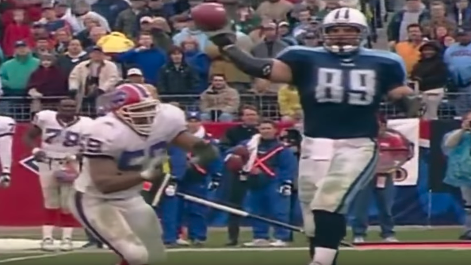 Neal übergibt den Ball dem Tight End Frank Wycheck, der ebenfalls Bills-Spieler auf die rechte Spielfeldseite lockt, was Raum auf der anderen Hälfte schafft. Es kommt zur Szene, die bis heute diskutiert wird: zum Pass von Wycheck auf den Wide Receiver Kevin Dyson.