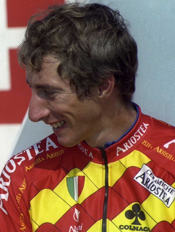 18 Kilometer vor dem Ziel versucht der Italiener Gianni Bugno, sich von seinen Konkurrenten abzusetzen. Bugno ist kein Nobody, sondern als zweifacher Weltmeister einer der besten Fahrer seiner Generation. Nur ein Fahrer kann seinen Angriff kontern: Rolf Järmann.