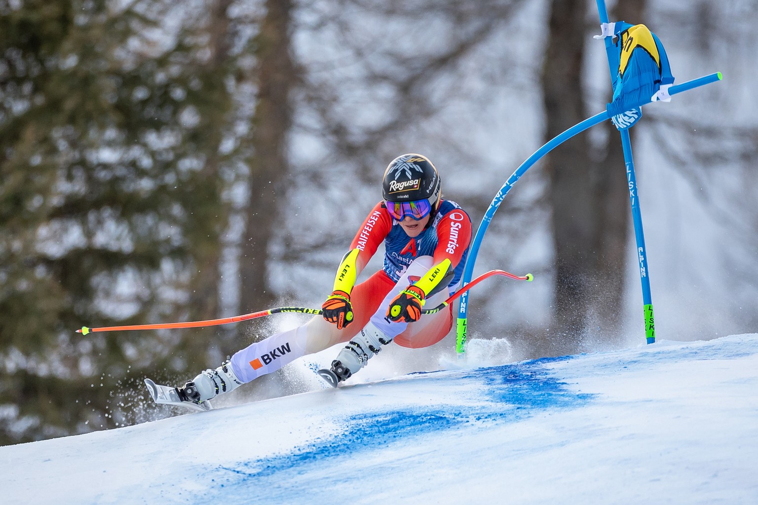 Michelle Gisin verpasste den zweiten Podestplatz des Winters als Fünfte um neun Hundertstel. Corinne Suter wurde Dreizehnte, Jasmina Suter Sechzehnte. Auch Delia Durrer (20.), Priska Nufer (23.) und Joana Hählen (25.) fuhren im engen Rennen mit 19 Fahrerinnen innerhalb einer Sekunde und den ersten 30 innerhalb von anderthalb Sekunden in die Punkte. Jasmine Flury hingegen landete nach einem Verschneider in den Fangnetzen. Die Abfahrtsweltmeisterin blieb aber von einer grösseren Verletzung verschont.