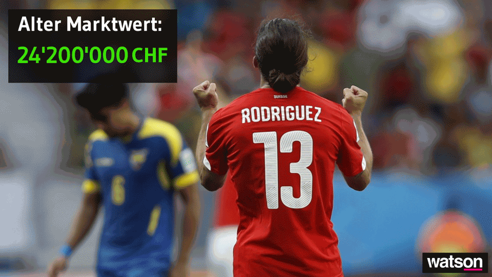 Die Belohnung: Ein Marktwertplus von 9,68 Millionen Franken. Neu führt Rodriguez mit knapp 34 Millionen die Rangliste der wertvollsten Schweizer Nati-Spieler alleine an. Welcher Spitzenklub krallt sich den Wolfsburger Weltklassemann?