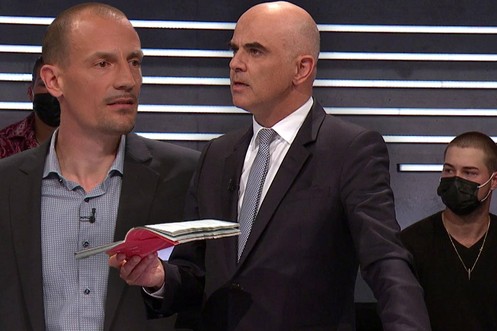 GSoA-Lempert entwaffnet in der Kriegsgeschäfte-«Arena» Bundesrat Parmelin
