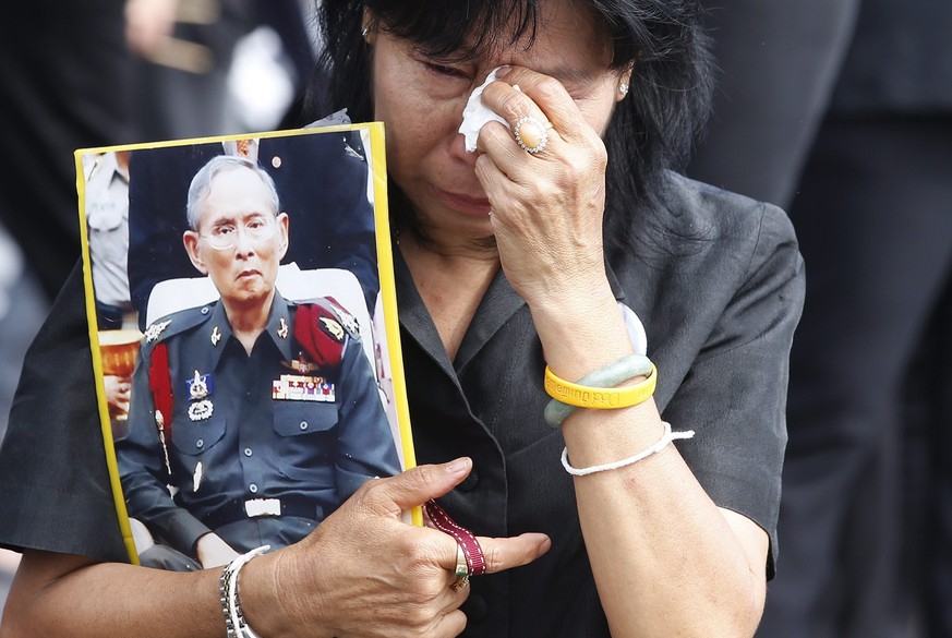 Mehr als 100'000 Menschen säumen den Weg der Prozession, mit der die symbolische Urne des Monarchen vom Grossen Palast, der ehemaligen Königsresidenz, zum Ort der Feuerbestattung gebracht wird. Der Leichnam soll dann am Abend verbrannt werden.