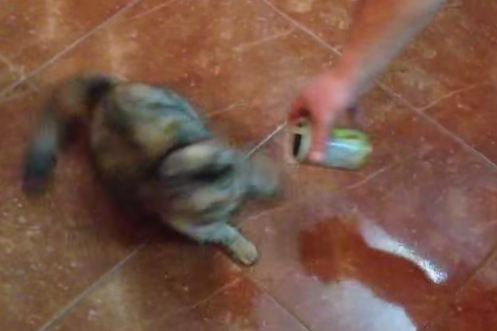 Sobald der Ton der Kleberolle erklingt, flutscht die Katzenzunge heraus