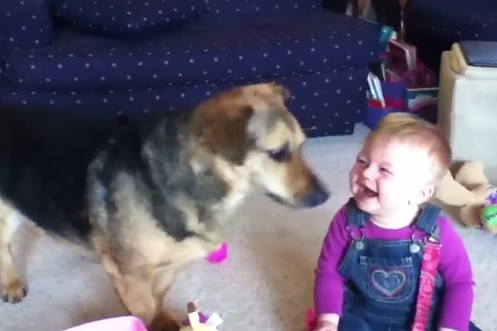 Katzen und Hunde sehen das Baby von Frauchen und Herrchen zum ersten Mal