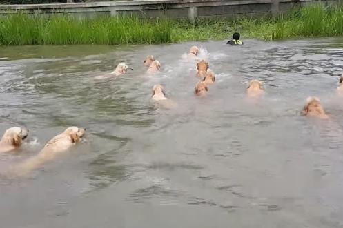 Der Traum aller Hundefreunde: 16 Hunde in einem Bad