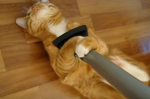 Das Hobby von Bobo: Sich vom Staubsauger verwöhnen lassen