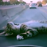 Bei einem Autorennen will eine Katze natürlich mitmischen