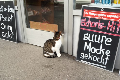 Er hätte das Stöckchen so gern stolz Zuhause präsentiert – wenn bloss die Tür ein bisschen breiter wäre ...