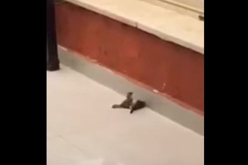 Die Katze will über den Fluss, ohne sich die Pfoten nass zu machen. Ihre Lösung ist clever ...