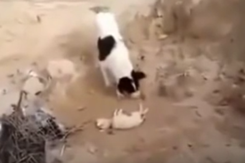 Das passiert, wenn Kalb und Welpe zum ersten Mal aufeinandertreffen