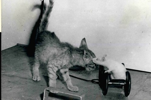 «Haha du siehst mich nicht!» Kätzchen spielt verwirrter Hündin einen lustigen Streich