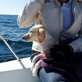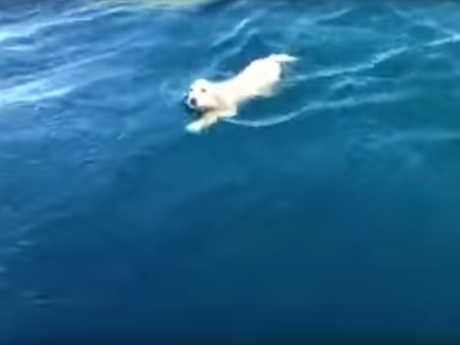 Eine italienische Crew segelt auf offener See, als ihnen plötzlich ein Welpe entgegen schwimmt