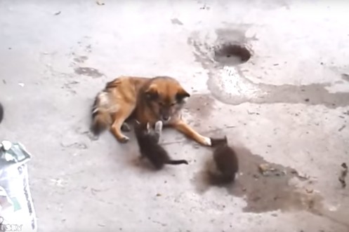 «Haha du siehst mich nicht!» Kätzchen spielt verwirrter Hündin einen lustigen Streich