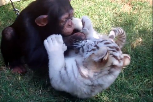 Wenn das Äffchen mit den Welpen kuschelt, seufzt auch du leise vor dich hin