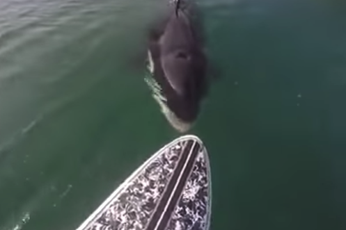 Hier schwimmt ein fast acht Meter langer Riesenhai vor der Küste von Massachusetts