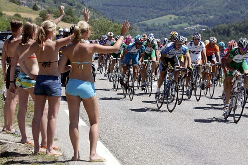 Bikini-Girl will zeigen, dass sie im Fernsehen ist – darunter leiden muss nicht nur Nibali, sondern auch ihr Handy