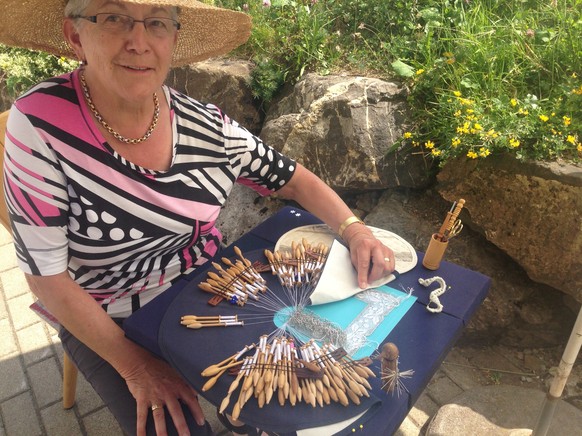 Zurück in der Unterkunft geniesse ich die letzten Sonnenstrahlen im Outdoor-Whirlpool, den man bei Bedarf heizen kann. Das braucht's heute nicht. Vor dem Haus sitzt eine Dame, sie «chlöpplet», wie sie sagt. «Klöppeln», auf Hochdeutsch, als ich nachfrage. Es nützt nichts, die Erklärung muss her. Hier die Kurzform: Sie macht ein Spitzentaschentuch für eine Braut. Das dauert so 100 Stunden. Wichtig sind zwei Bewegungen: Kreuzen und Drehen. Sie mache flandrische Spitzen, es gäbe viele verschiedene. Ursprünglich kommt das «Chlöpplä» aus Asien, die Entdecker mit Schiffen brachten die Kunst vor langer Zeit nach Europa. Hier noch das Bild dazu. Sieht kompliziert aus. Ist wohl auch kompliziert. Aber schön.