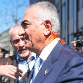 Schah-Sohn Pahlavi mit roter Flüssigkeit bespritzt