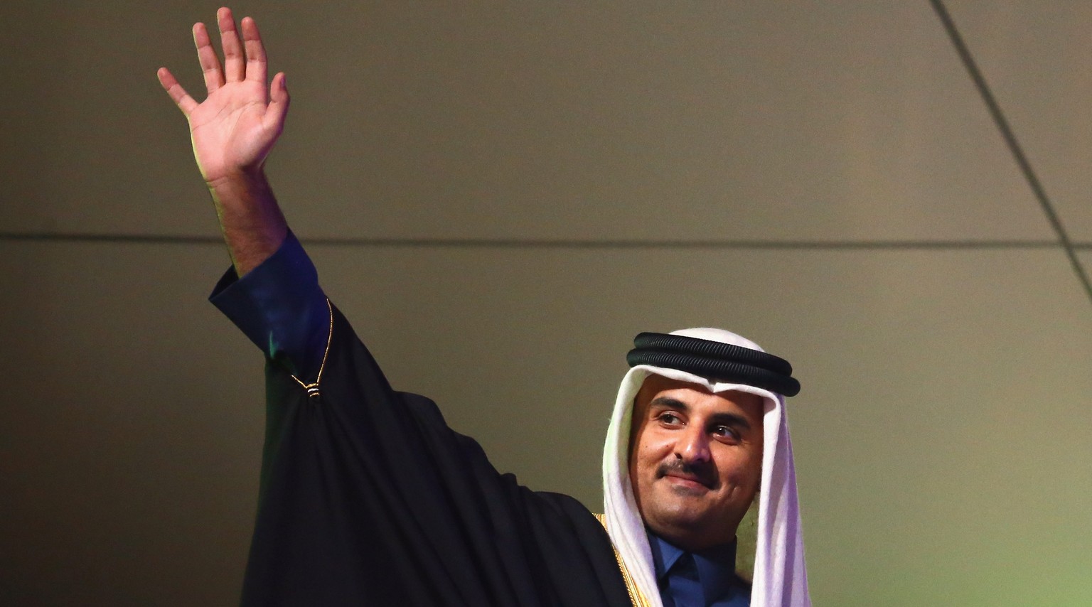 Scheich Tamim bin Hamad Al Thani grüsst bei der Eröffnungsfeier der Handball-WM. Der erst 34-Jährige ist das Staatsoberhaupt des Emirats Katar.