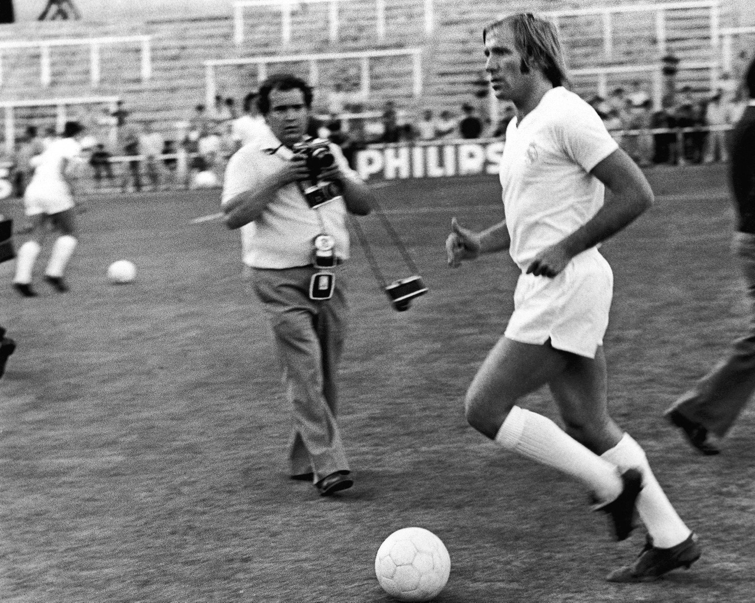 Ein Fotograf will Netzer bei seinem ersten Training in Madrid ablichten.