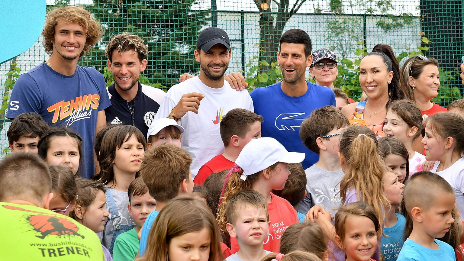 Sorgloses Quintett: Alexander Zverev, Dominic Thiem, Grigor Dimitrov, Novak Djokovic und Jelena Jankovic.