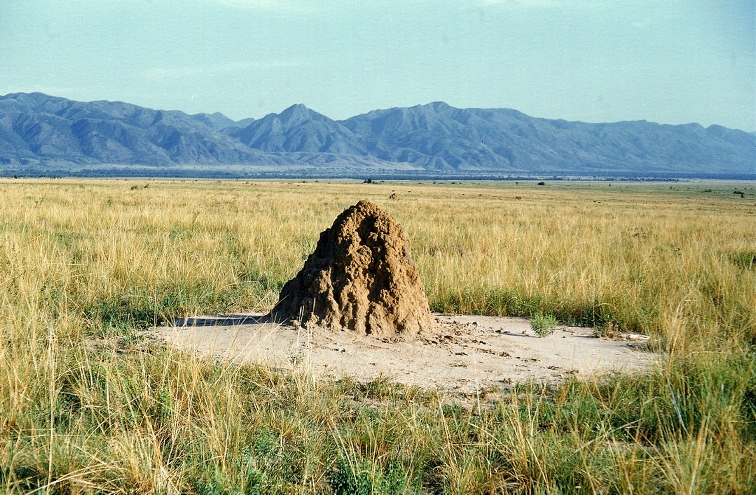Termitenbau in der Trockensteppe, südlich vom Eduardsee, Uganda, 1954.
