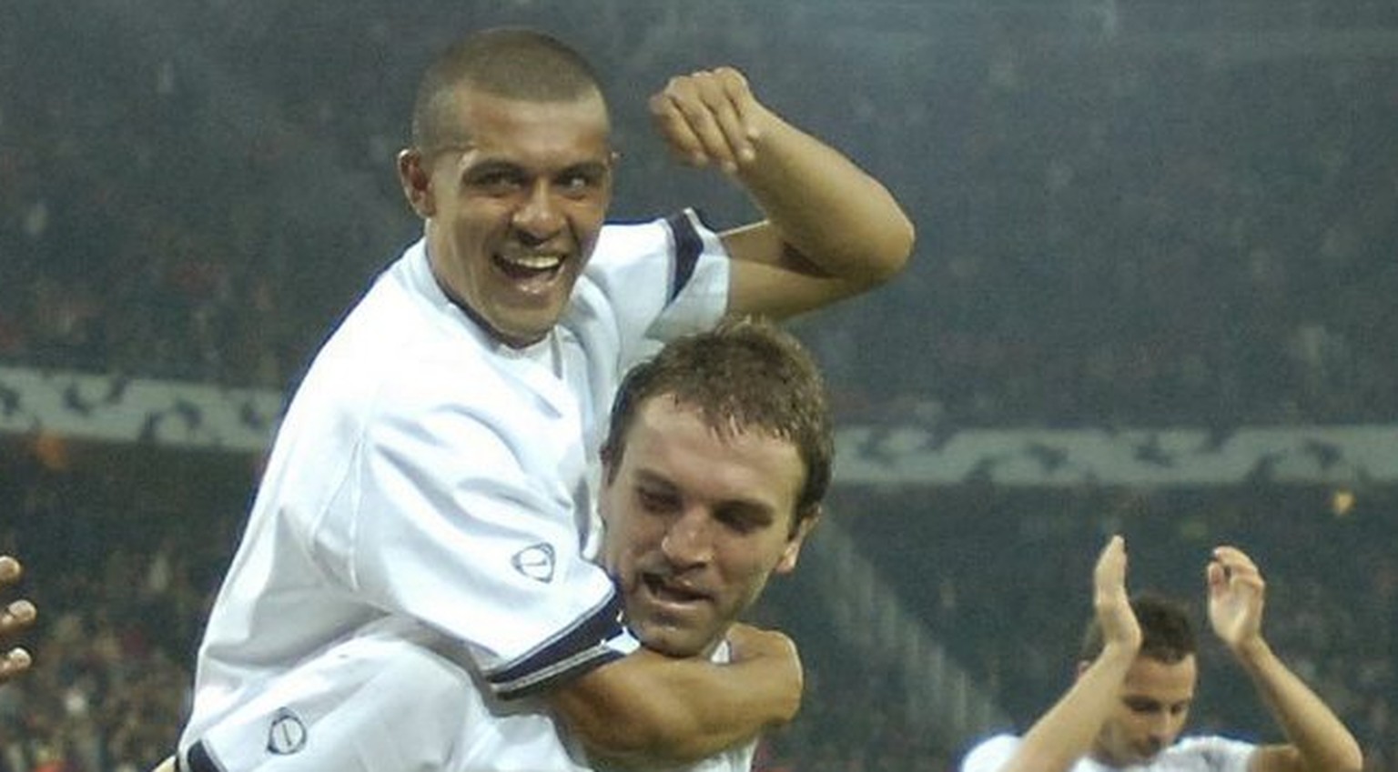 Milicevic nimmt Leandro zum Feiern Huckepack.