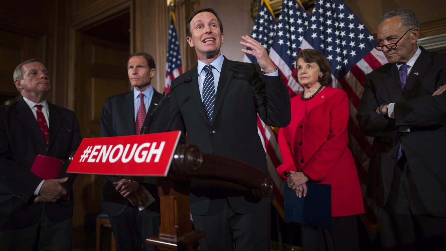 Der demokratische Senator Chris Murphy spricht nach der Abstimmung zu den Medien.