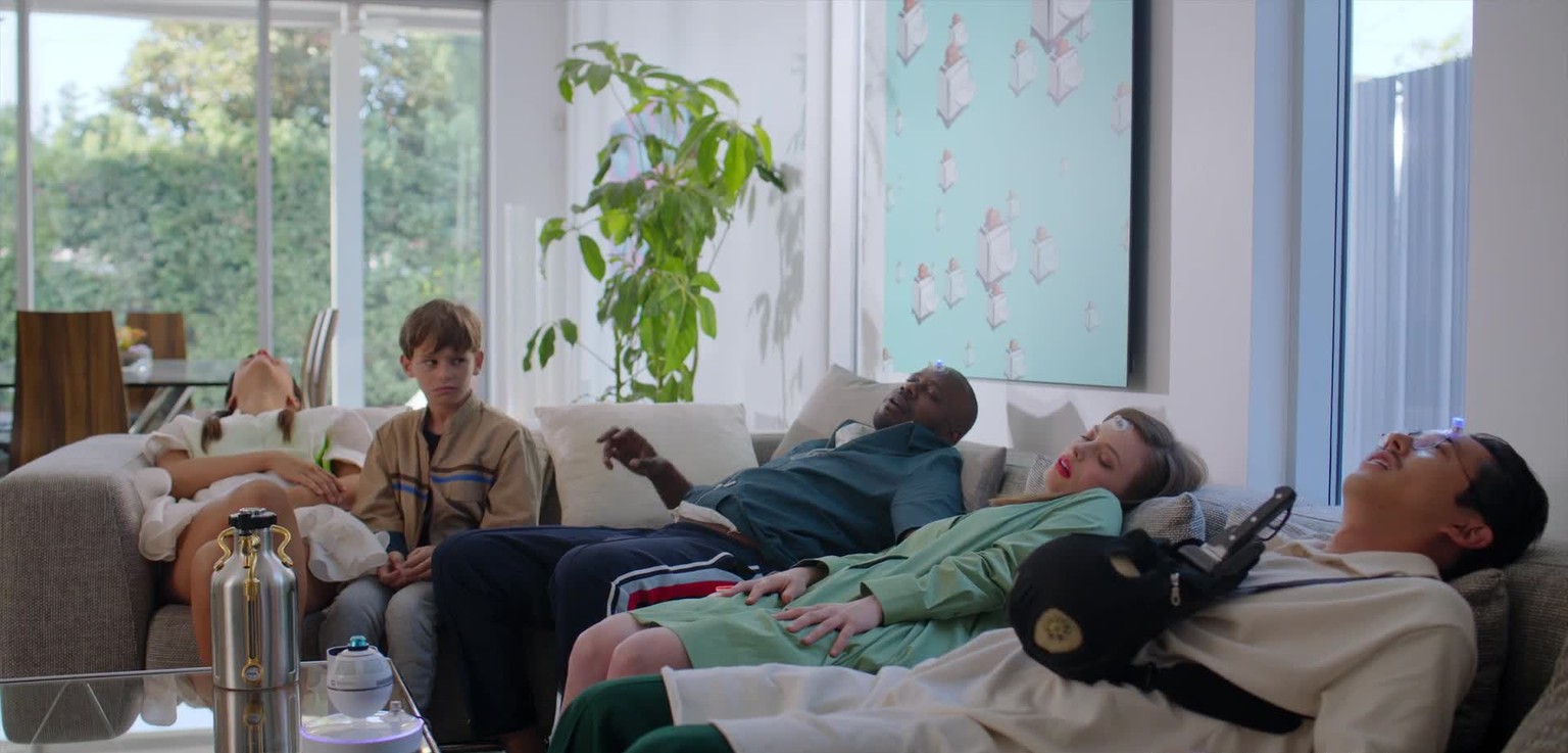 An der Wand sehen wir Screensaver-Kunst.