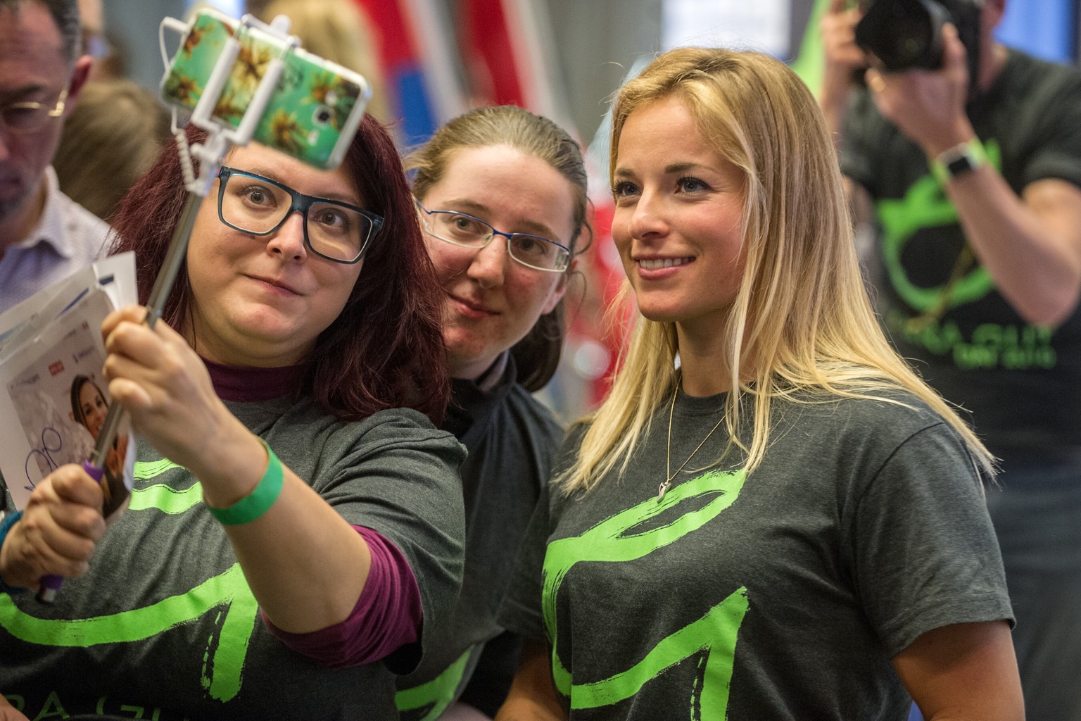 Lara Gut-Behrami posiert für ein Foto mit ihren Fans.