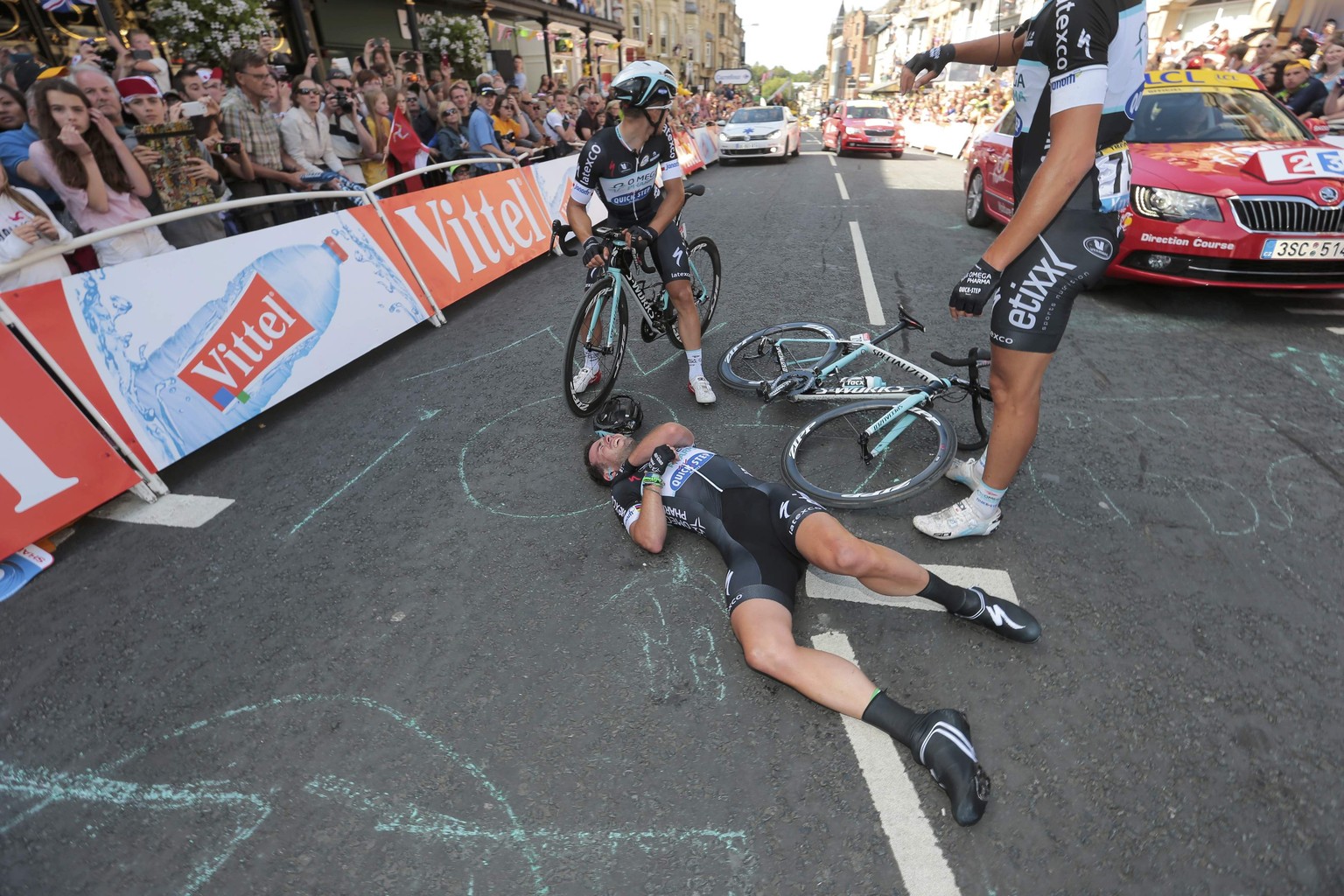 Mark Cavendish stürzte in einem Massensprint kurz vor der Zielankunft.