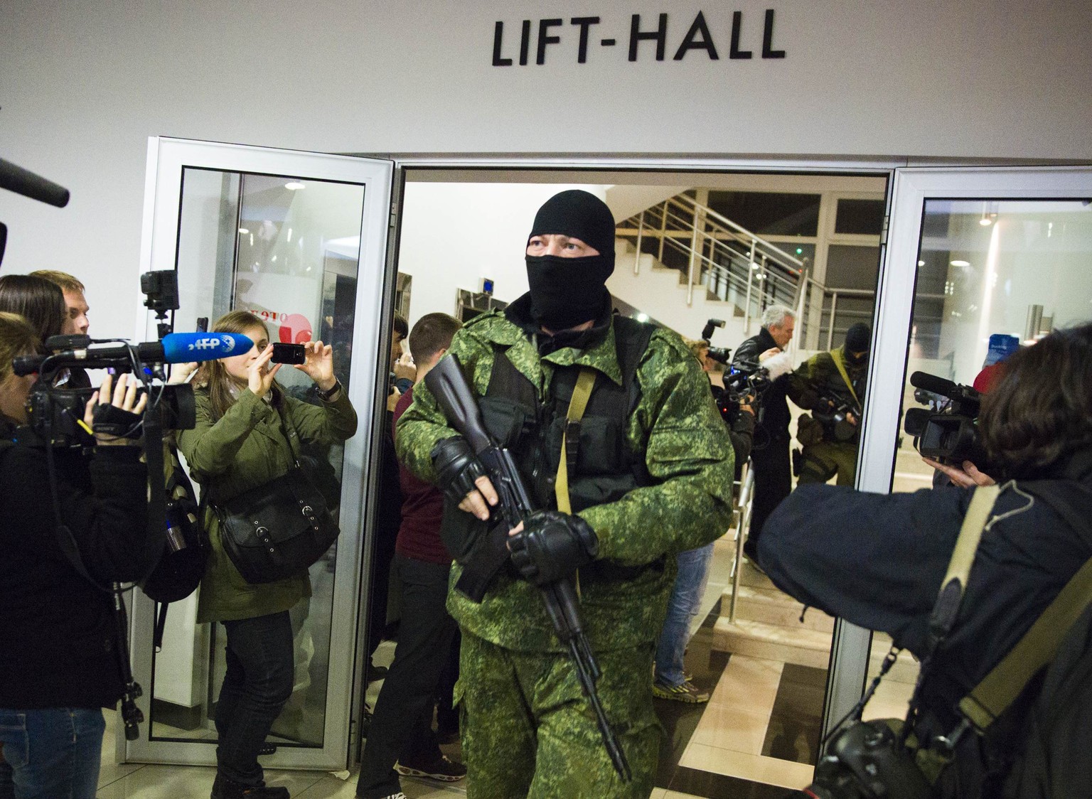 «Wir haben schon eine Kamera zerschlagen»: Das Hotel Moskau in Simferopol wird am Samstag Abend von Bewaffneten gestürmt.