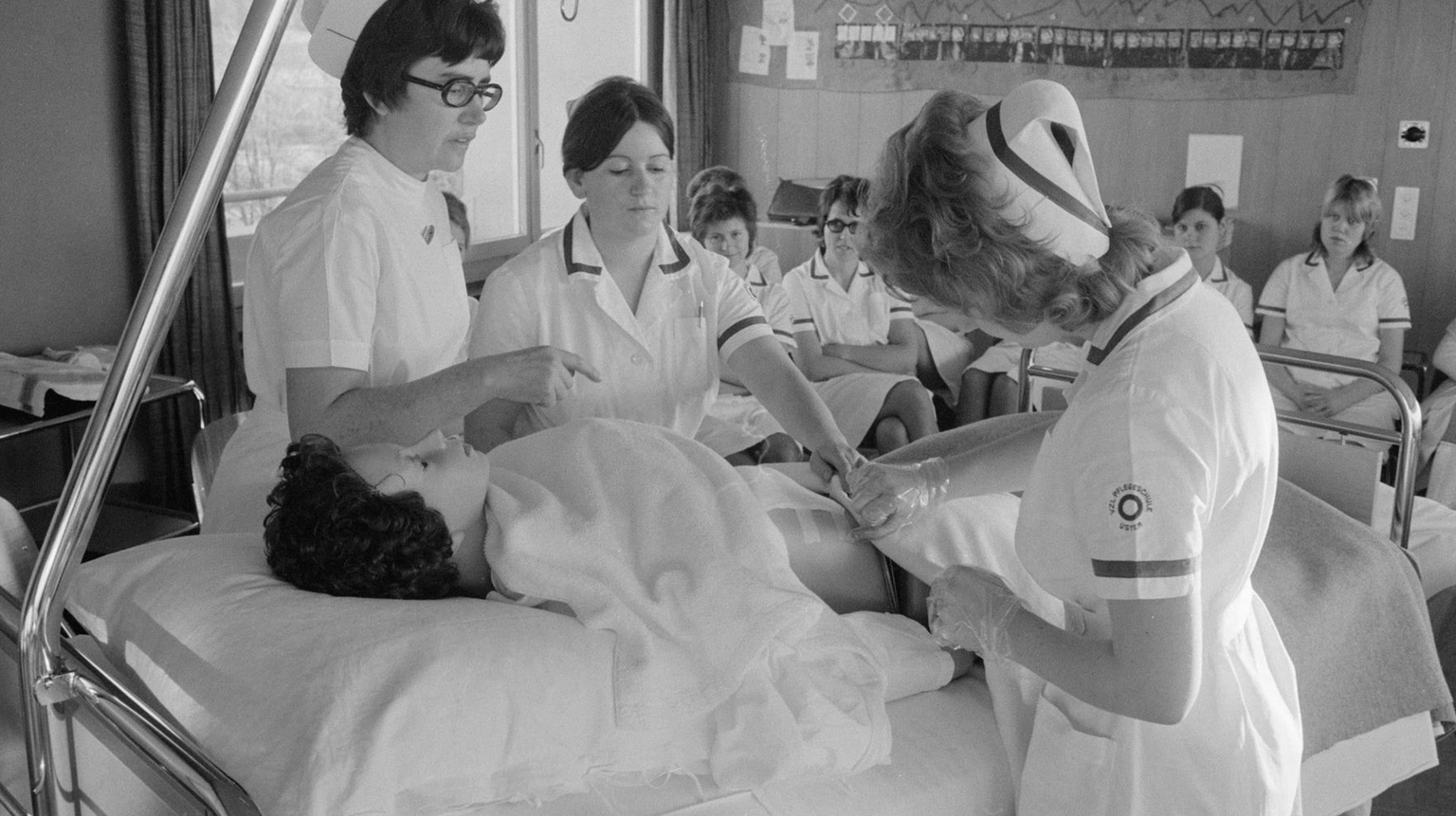 Mit Haube und Jupe: angehende Krankenschwestern 1972 im Bezirksspital Uster.