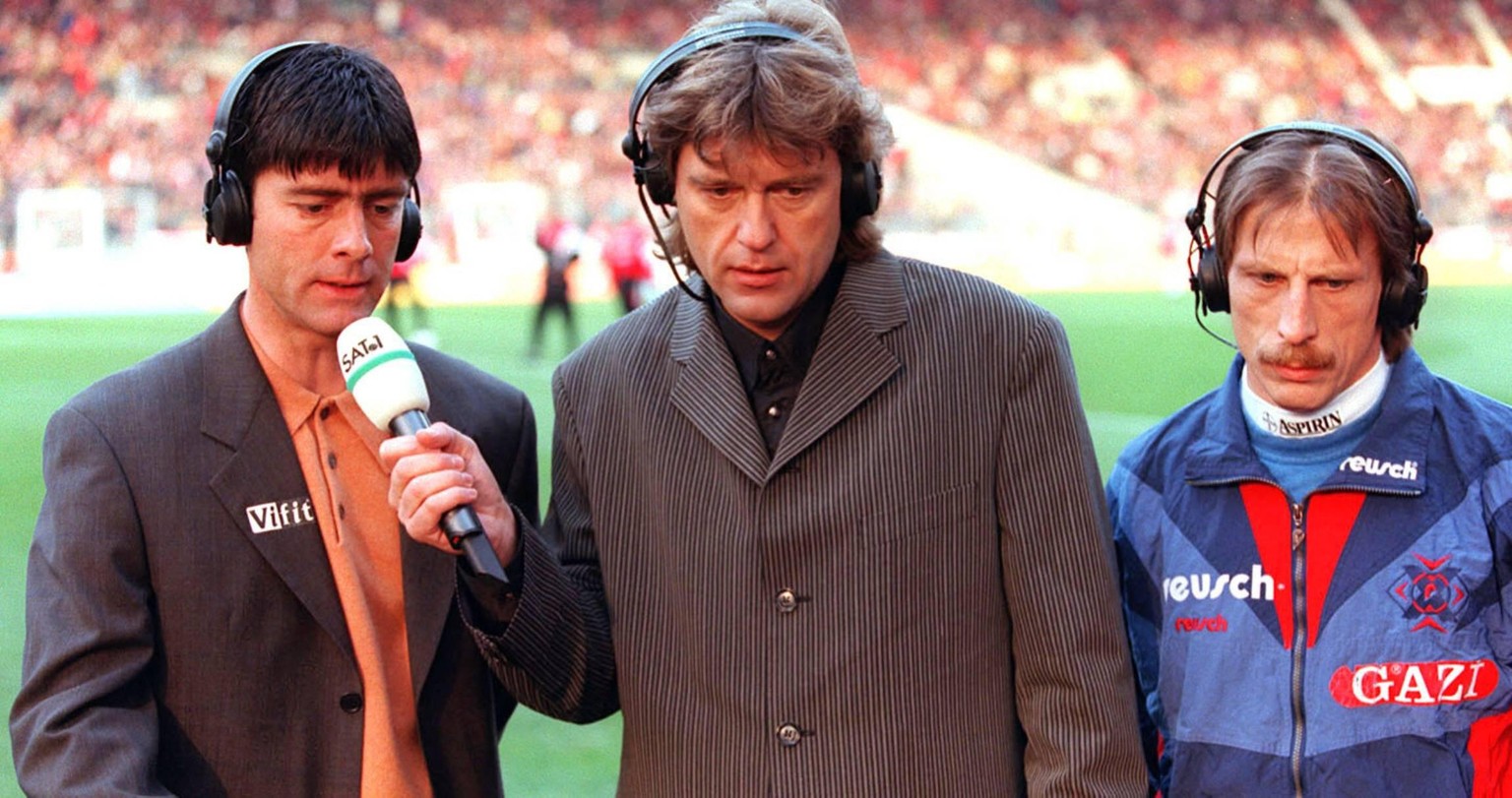 Jörg Dahlmann – hier 1997 mit Joachim Löw und Christoph Daum – kümmerte sich vor allem um die Südklubs Stuttgart und Karlsruhe. Unvergessen seine Schilderung des Jahrhundert-Tors von Jay-Jay Okocha gegen den KSC.