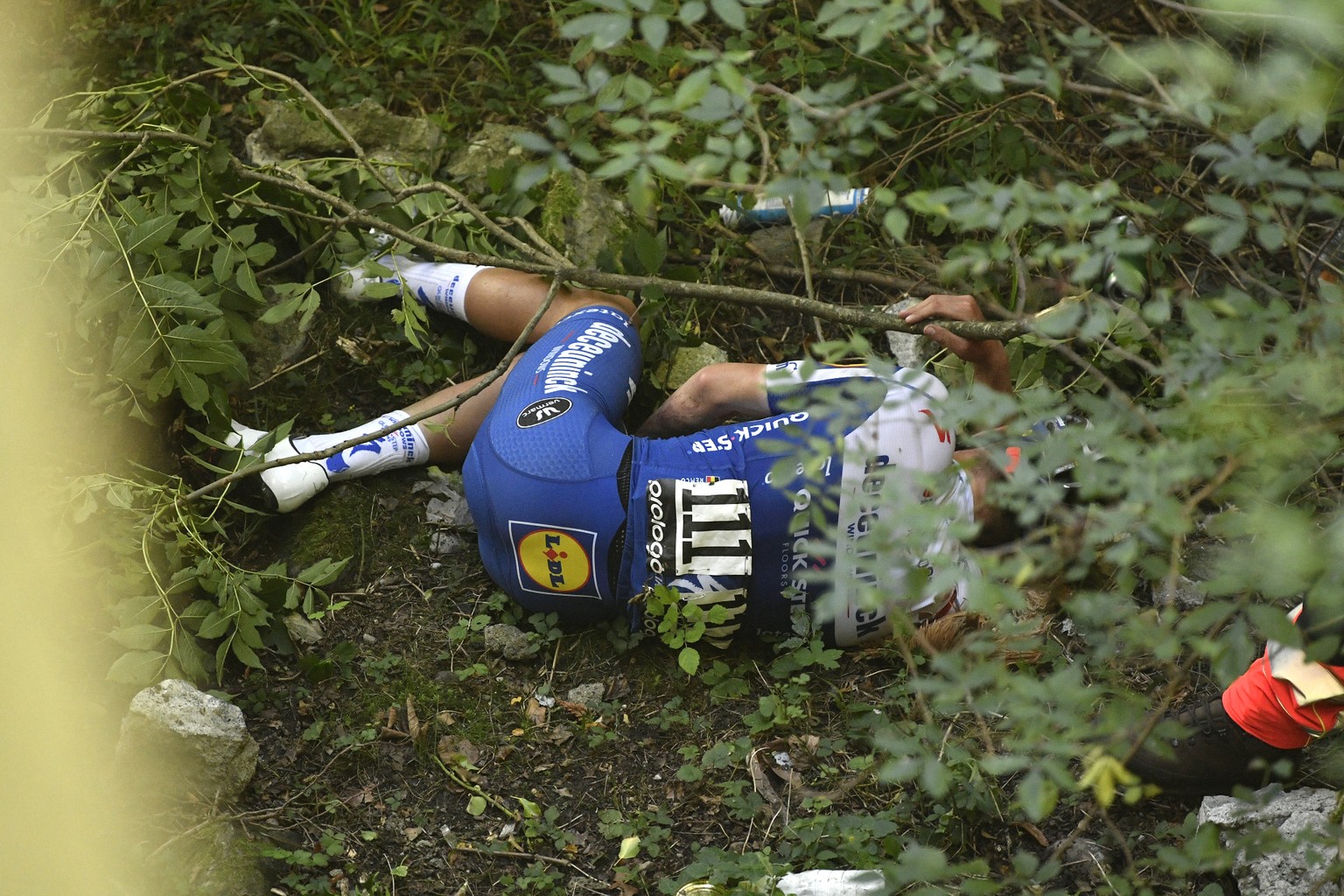 Die Bilder häufen sich: Remco Evenepoel stürzte von einer Brücke mehrere Meter in die Tiefe.