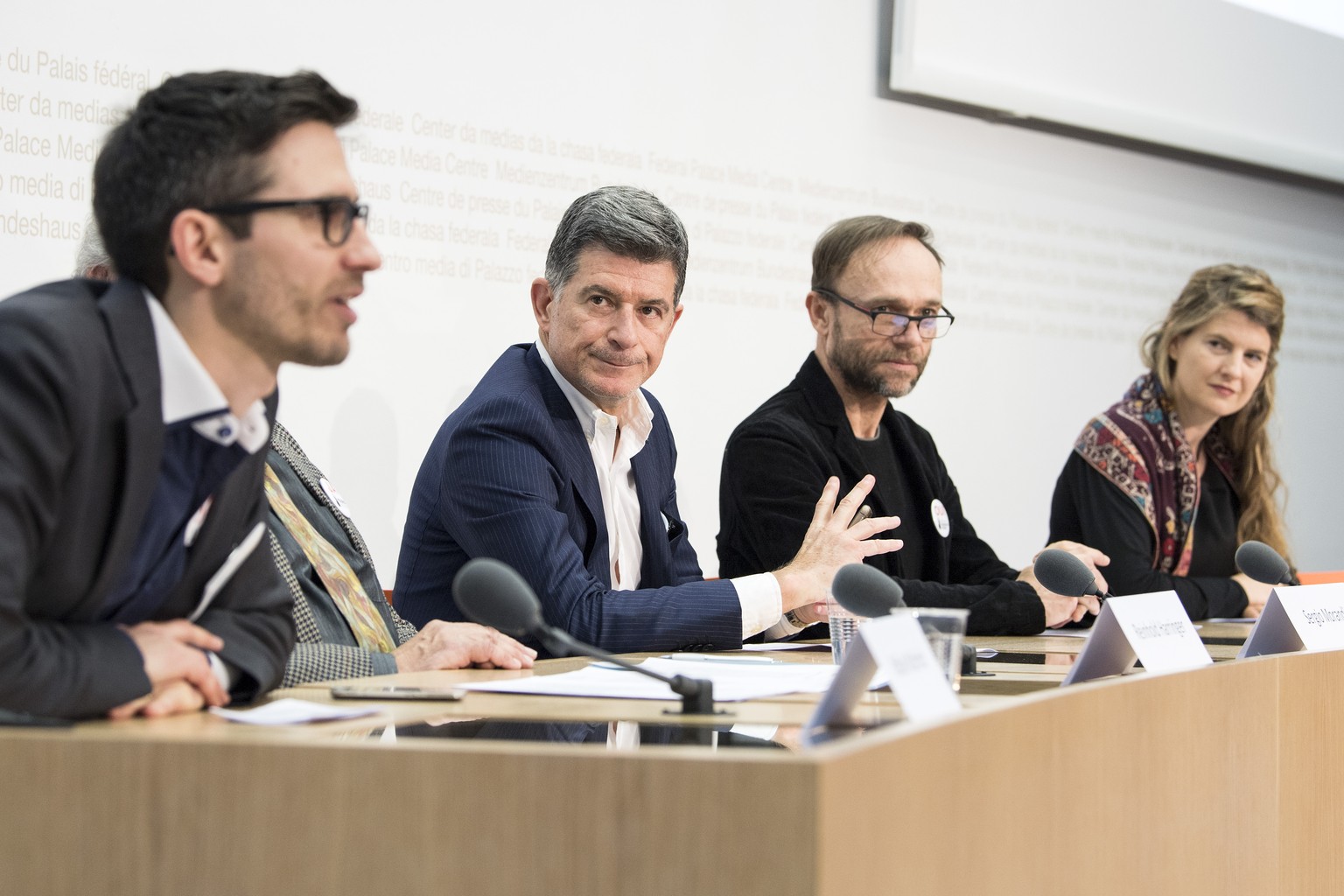 Katharina Serafimova an der Medienkonferenz des Vollgeld-Komitees.