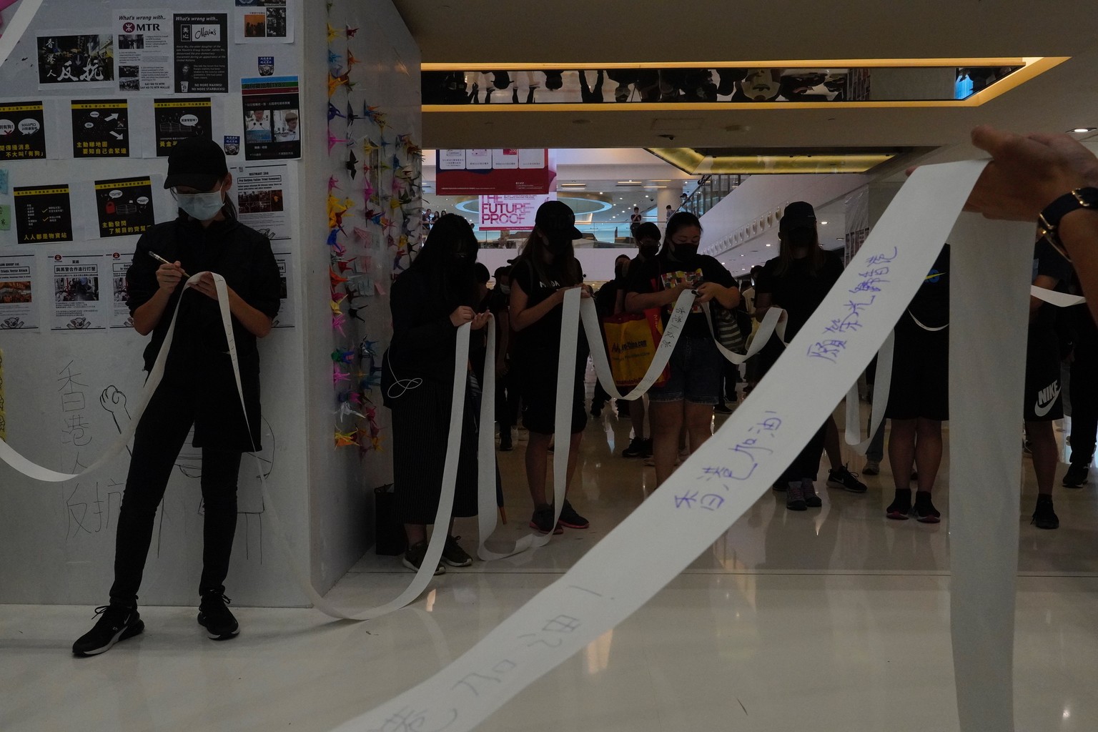 Demonstrierende blockieren ein Restaurant in einem Einkaufszentrum, das einer Pro-Beijing eingestellten Firma gehört.