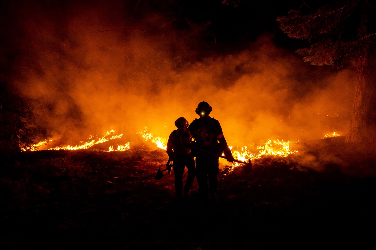 Feuerwehrleute im Kampf gegen die Flammen im Angeles National Forest, im Nordosten von Los Angeles.