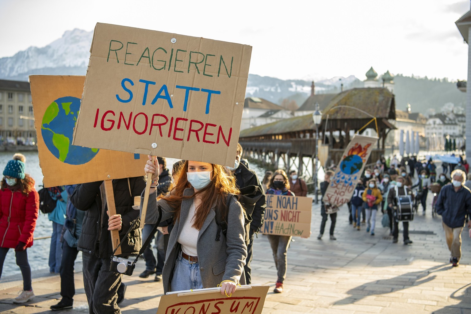 Am 19. März protestierten bereits Klimaaktivist:innen in einzelnen Städten wie hier in Luzern.