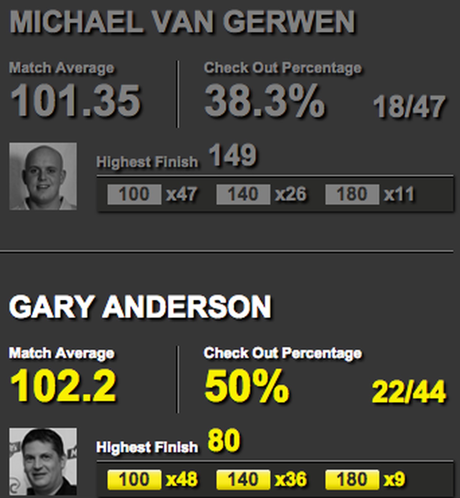 Die Scores am Ende der Partie.