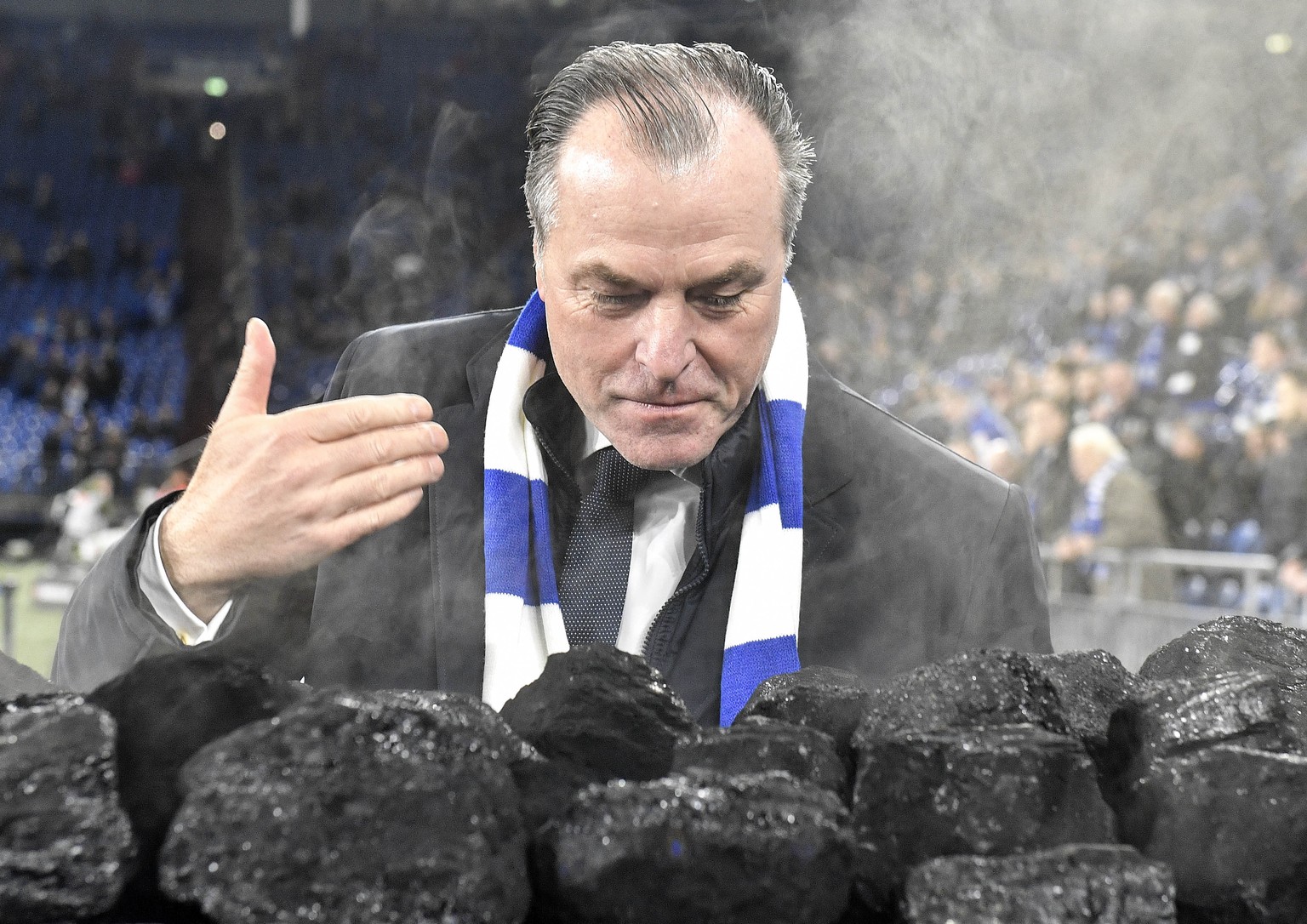 Clemens Tönnies schnuppert an Kohle während eines Bundesliga-Spiels seines FC Schalke 04.